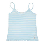 Baby blue stripe thin stripe tank top, soft on the skin, with sun and moon logo. Could be used as a pyjama or as a day to day top. Comes in two sizes.