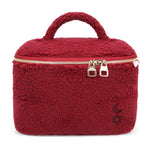burgundy shearling bag Square shape purple shearling interior with inside zipper pocket. Moon and sun logo detail 22W*16H*14D cm